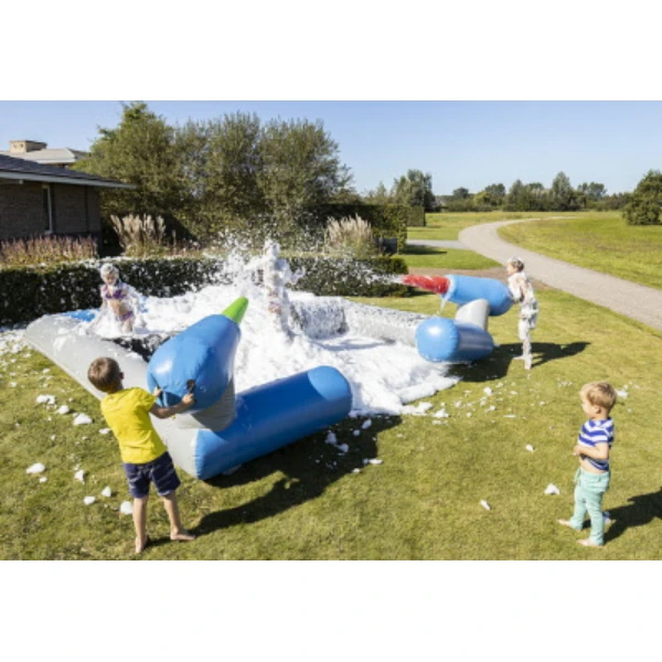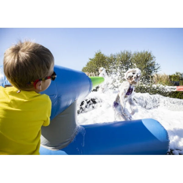 Met de Bubble Park luchtkussens van Mh-partyverhuur creëer je in een handomdraai een schuimparty in je eigen tuin. In tegenstelling tot andere schuimmachines heeft onze generator geen elektrische of draaiende onderdelen, waardoor kinderen veilig en vrij kunnen spelen in het schuim. Dit luchtkussen voor een schuimparty is snel en gemakkelijk op te zetten, zodat kinderen in een mum van tijd kunnen genieten. Ga je voor een opblaasbare schuimparty in het thema jungle? Of kies je voor een dolfijn? Of misschien toch een regenboog? Met de Bubble Park luchtkussens voor een schuimparty kan de pret beginnen!
