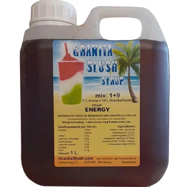 Voor het beste resultaat meng je onze Slush Siroop Energy in een verhouding van 1 deel siroop op 9 delen water (1+9). Dit betekent dat je met één liter siroop maar liefst 10 liter kant-en-klare slush kunt maken! Deze verhouding zorgt voor een perfecte balans tussen smaak, kleur en consistentie, zodat je slush altijd mooi bevriest en heerlijk smaakt.