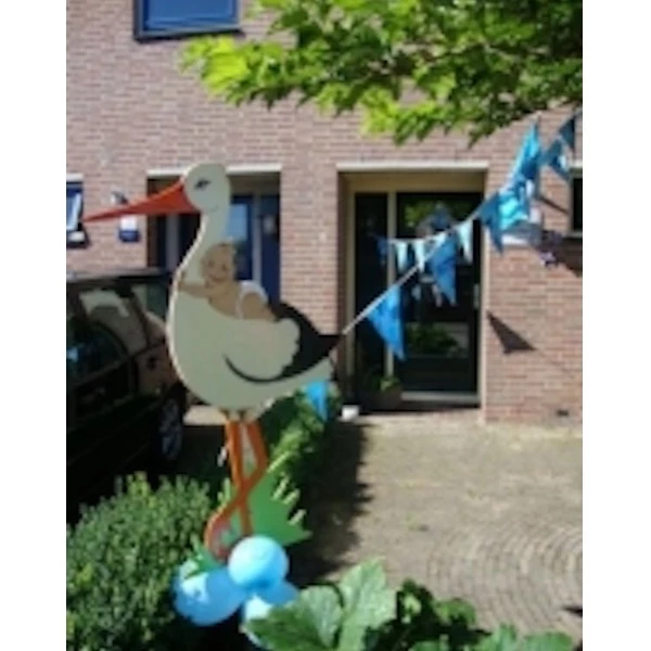 Houten ooievaar met baby