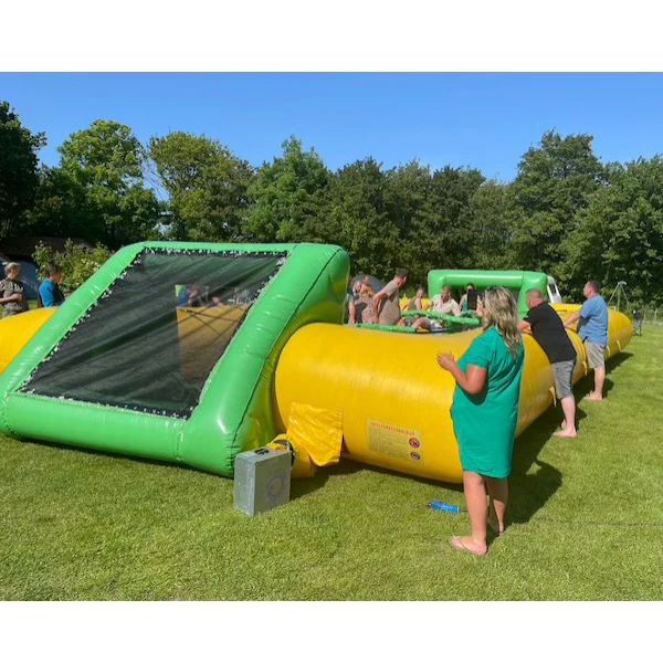 Wilt u een unieke, actieve en vooral hilarische attractie toevoegen aan uw feest of evenement? Dan is levend tafelvoetbal huren bij MH-Partyverhuur de perfecte keuze. Dit populaire spel is gebaseerd op het klassieke tafelvoetbal, maar dan op ware grootte. De spelers staan zelf in het veld vast aan stangen en nemen het in teamverband tegen elkaar op. Dat zorgt voor fanatieke wedstrijden, veel lachmomenten en volop plezier voor jong en oud.