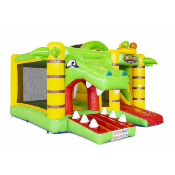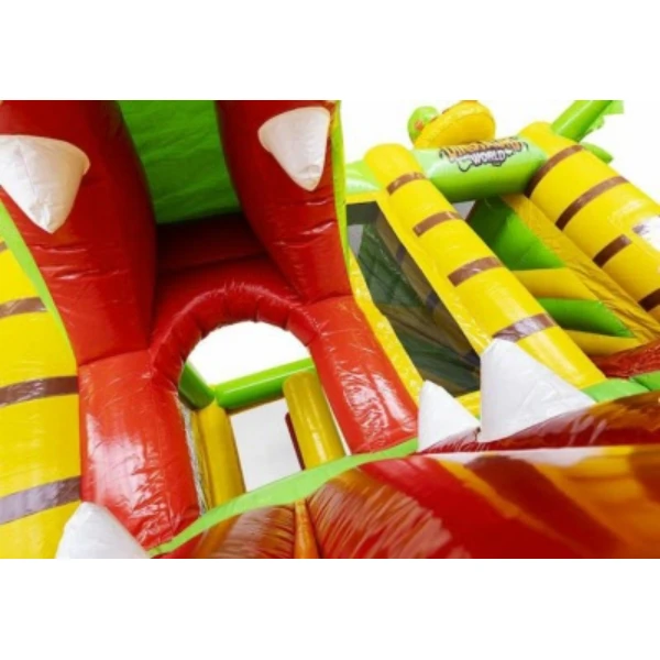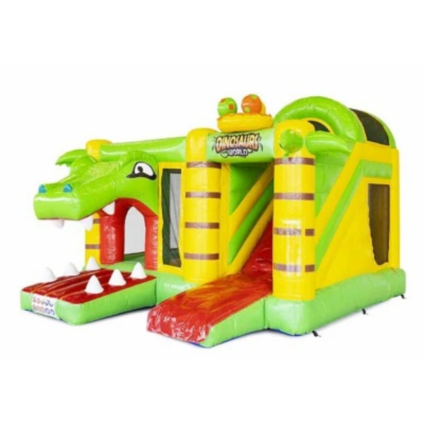 Het Multiplay springkussen in dino thema is niet zomaar een springkussen. Kinderen kunnen niet alleen springen, maar ook klimmen en glijden. Dankzij de speelse obstakels en kleurrijke afbeeldingen van dinosaurussen wanen ze zich in een prehistorisch avontuur. De ingebouwde glijbaan maakt het speelplezier compleet en zorgt voor extra afwisseling en beweging.