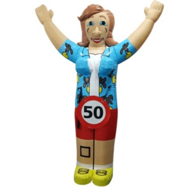 Ben je op zoek naar een unieke en grappige manier om de 50e verjaardag van een vriendin of familielid te vieren? Onze opblaasfiguur Sarah vakantievrouw is de perfecte keuze! Deze vrolijke blikvanger zorgt gegarandeerd voor een lach op het gezicht van de jarige en alle gasten. Het figuur is eenvoudig op te zetten en voegt direct een feestelijke en zomerse sfeer toe aan elke locatie. Maak van de verjaardag van Sarah een onvergetelijke dag met deze originele blikvanger.