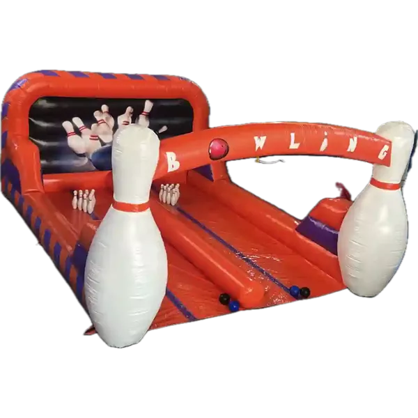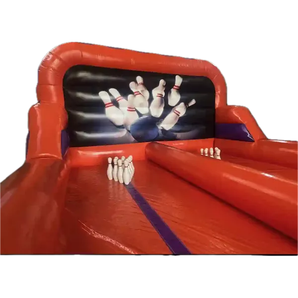 Maak uw zeskamp, schoolfeest of bedrijfsfeest compleet met deze unieke opblaasbare bowlingbaan en zorg voor een onvergetelijke ervaring vol strikes en plezier!
