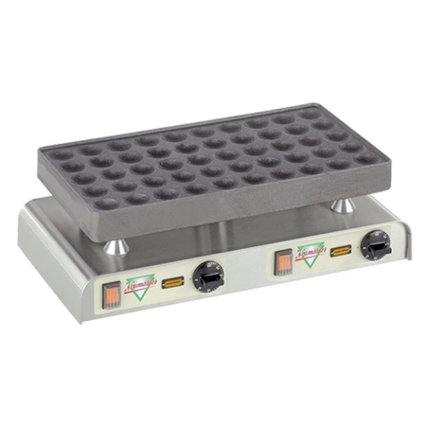 Deze elecrische poffertjes bakplaat is gemaakt uit een zware gegoten plaat en is geschikt om 50 poffertjes tegelijk te maken.