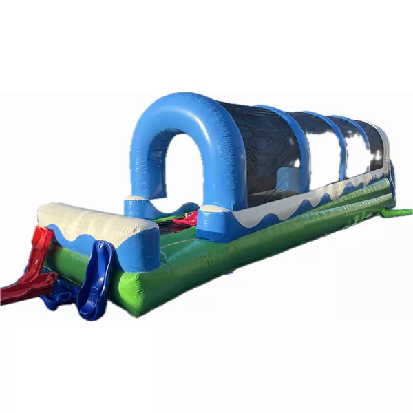 Een opblaasbare rodelbaan past perfect bij een winterthema. Zonder sneeuw of kou creëer je toch het gevoel van rodelen. Deelnemers nemen plaats op een band en glijden met snelheid naar beneden, wat zorgt voor spanning en veel enthousiasme. De 14 meter lange baan biedt een mooie lengte voor een soepele en uitdagende rit, waardoor bezoekers keer op keer opnieuw willen gaan.