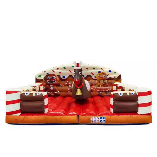 Wilt u uw winterevenement, kerstfeest of wintermarkt voorzien van een echte blikvanger? Kies dan voor het rodeo rendier Gingerbread huren bij Mh-PartyVerhuur. Deze unieke rodeo-attractie is uitgevoerd in een vrolijke gingerbread- en winterstijl en zorgt gegarandeerd voor veel plezier, spanning en hilarische momenten. Ideaal voor bedrijfsfeesten, scholen, kerstborrels, après-ski party’s en winterse evenementen.