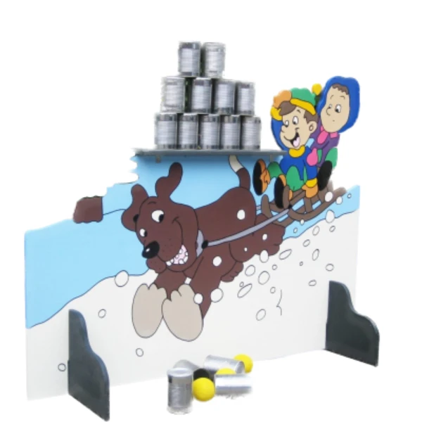 Plaats de 2 bij geleverde steunen onder het spelbord en stapel de blikken op het plateau.Afhankelijk van de leeftijd van de kinderen bepaal de afstand van gooien.Gooi met 3 ballen zoveel mogelijk blikken om.