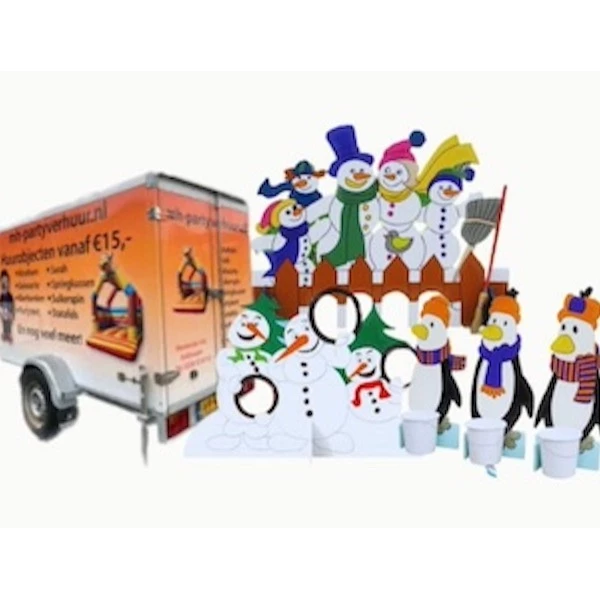Op zoek naar een origineel en sfeervol idee voor een winterfeest, kerstmarkt of bedrijfsuitje? Huur dan het winterspelen pakket van MH-Partyverhuur! Dit complete pakket brengt winterse gezelligheid en vrolijke competitie naar elk evenement. Met leuke spellen zoals kaarsenstapelen, ijspegel vangen, pinguïn voeren, sneeuwpret golf, sleetje blikgooien en sneeuwballen gooien is plezier voor jong en oud gegarandeerd.