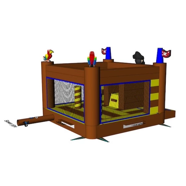 Een bijzonder onderdeel van deze stormbaan is deel 3, dat ook apart te huur is. Dit is een multifunctioneel springkussen met glijbaan, helemaal in stijl van het piratenthema. Kinderen kunnen er heerlijk op springen, klimmen en glijden. Ideaal voor feestjes met jongere kinderen of als u wat minder ruimte heeft, maar toch een leuke en veilige attractie zoekt.
