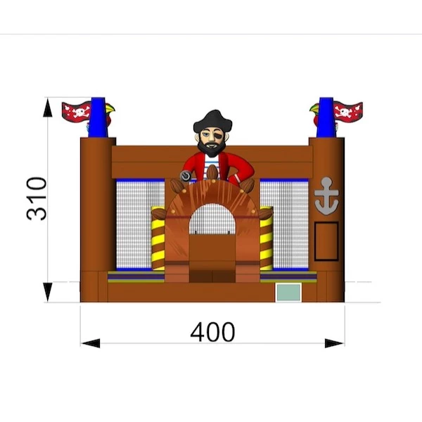 Of u nu kiest voor de volledige stormbaan of alleen het springkussen met glijbaan: succes is gegarandeerd. De kleurrijke prints, vrolijke piraten en speelse elementen maken dit springkussen tot een echte favoriet.