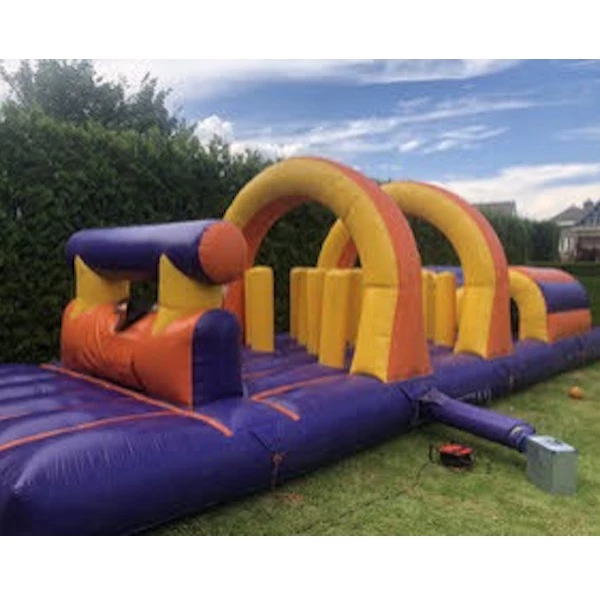 Wegens het feit dat de zijkanten open zijn is het ivm de veiligheid van de kinderen alleen mogelijk deze baan op (kunst)gras te plaatsen of in een gymzaal waar voldoende valmatten beschikbaar zijn om rond het kussen te leggen.