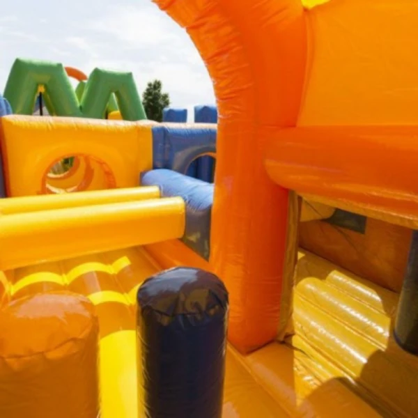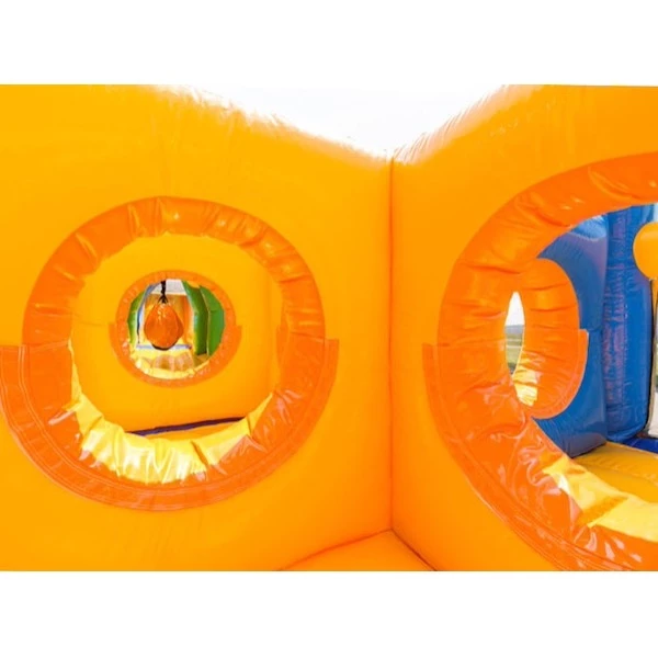 Deze 9 meter lange stormbaan geleverd in vrolijke kleuren is perfect om iedereen een spannende en super leuke dag te bezorgen! Laat ze vliegensvlug kruipen, rennen, springen, klimmen en glijden op dit dubbele parcours. Wie bereikt als eerste de overkant van deze opblaasbare hindernisbaan? De dubbele stormbaan biedt extra vermaak doordat er niet één, maar twee afzonderlijke banen zijn aangebracht. Dat wordt één groot feest voor je iedereen!