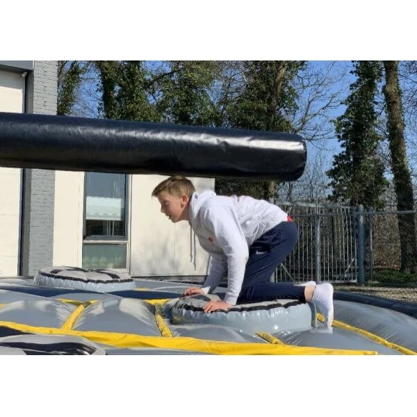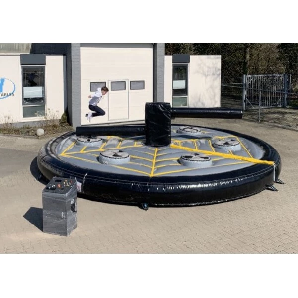 De Sweeper is een dynamisch spel waarbij deelnemers op een groot, zacht luchtkussen staan. In het midden draait een grote arm – of eigenlijk twee: één boven en één onder – die de spelers moeten ontwijken door eroverheen te springen of onderdoor te duiken. Klinkt simpel? Wacht maar tot de snelheid toeneemt! De laatste die blijft staan, wint. Het is een echte publiekstrekker en geschikt voor jong en oud.