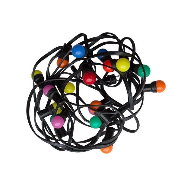 Laat uw feest stralen met de levendige uitstraling van onze gekleurde bolletjesverlichting. Of het nu in de avond is voor een betoverende setting of overdag om een kleurrijk decor te creëren, deze verlichting voegt een feestelijk element toe aan elke gelegenheid.